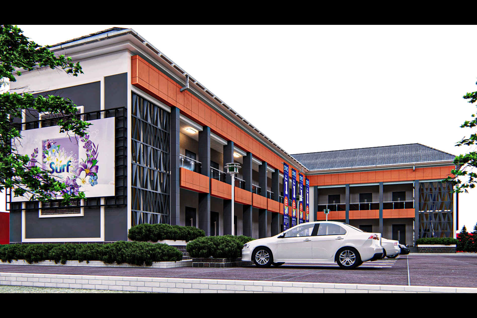This Shopping Complex design is an open design concept where each lockup shop opens to a terrace or balcony. Architect Kelly’s Ideas was to create the most cost effective and tropical design for the client. Hence, he opted for the normal Nigeria tropical Design with a small torch of contemporary feel. To achieve this, pitched roof design was used to enhance the flow of rain water, while Aluco metal Board cladding was used to improve the contemporary nature of the building.