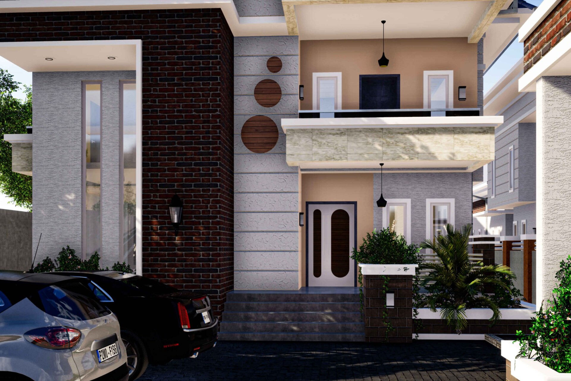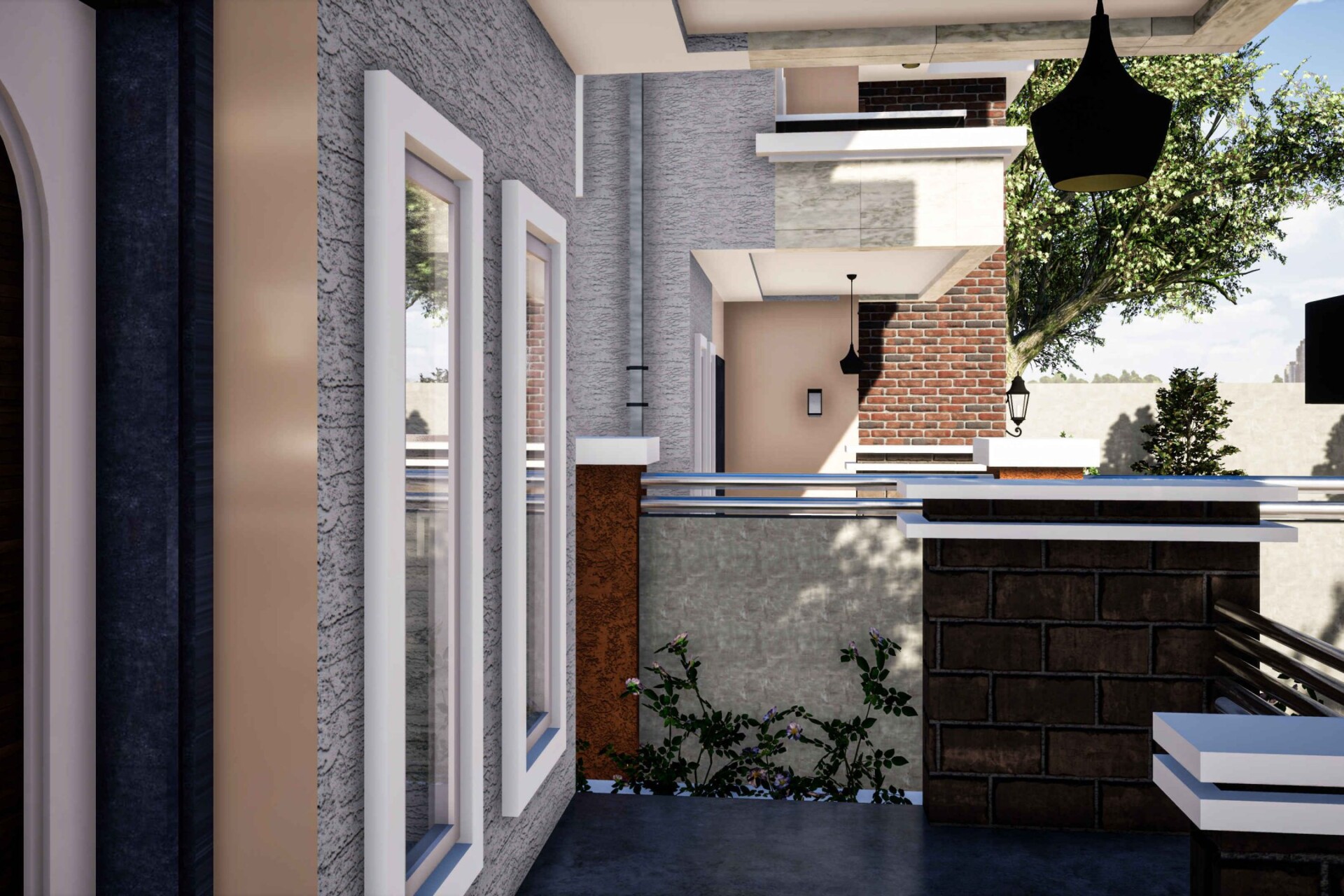 The walls were designed with the regular Sand Crete blocks finished with paintings and facing brick on plastered walls.