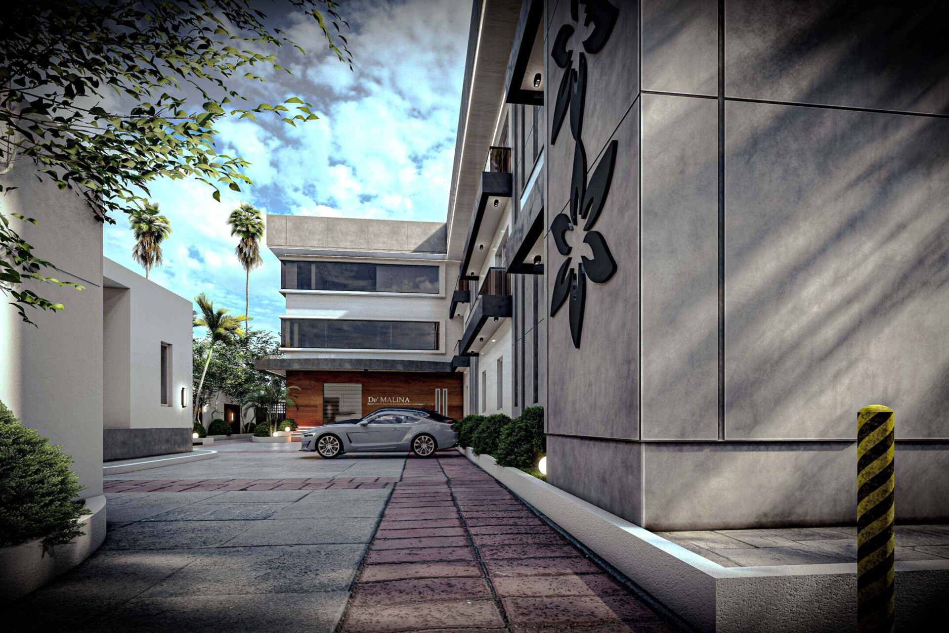 The project is a three-floor building comprising a reception, a gym overlooking an outdoor pool, and a tropical outdoor bar. Accommodation facilities include 12 lettable rooms, 3 two-bedroom serviced apartment spaces, 9 studio serviced apartment spaces, and 3 one-bedroom serviced apartment spaces. Utility areas provided within the facility include an industrial hotel kitchen, laundry room, and offices.