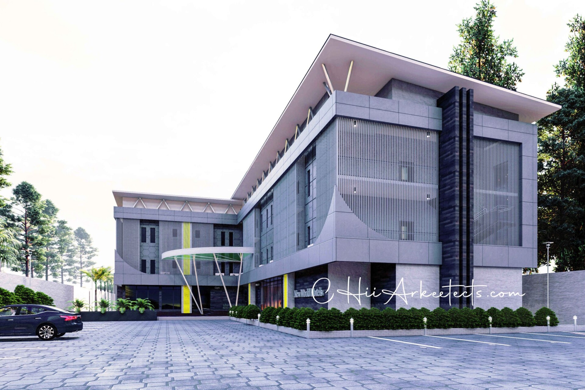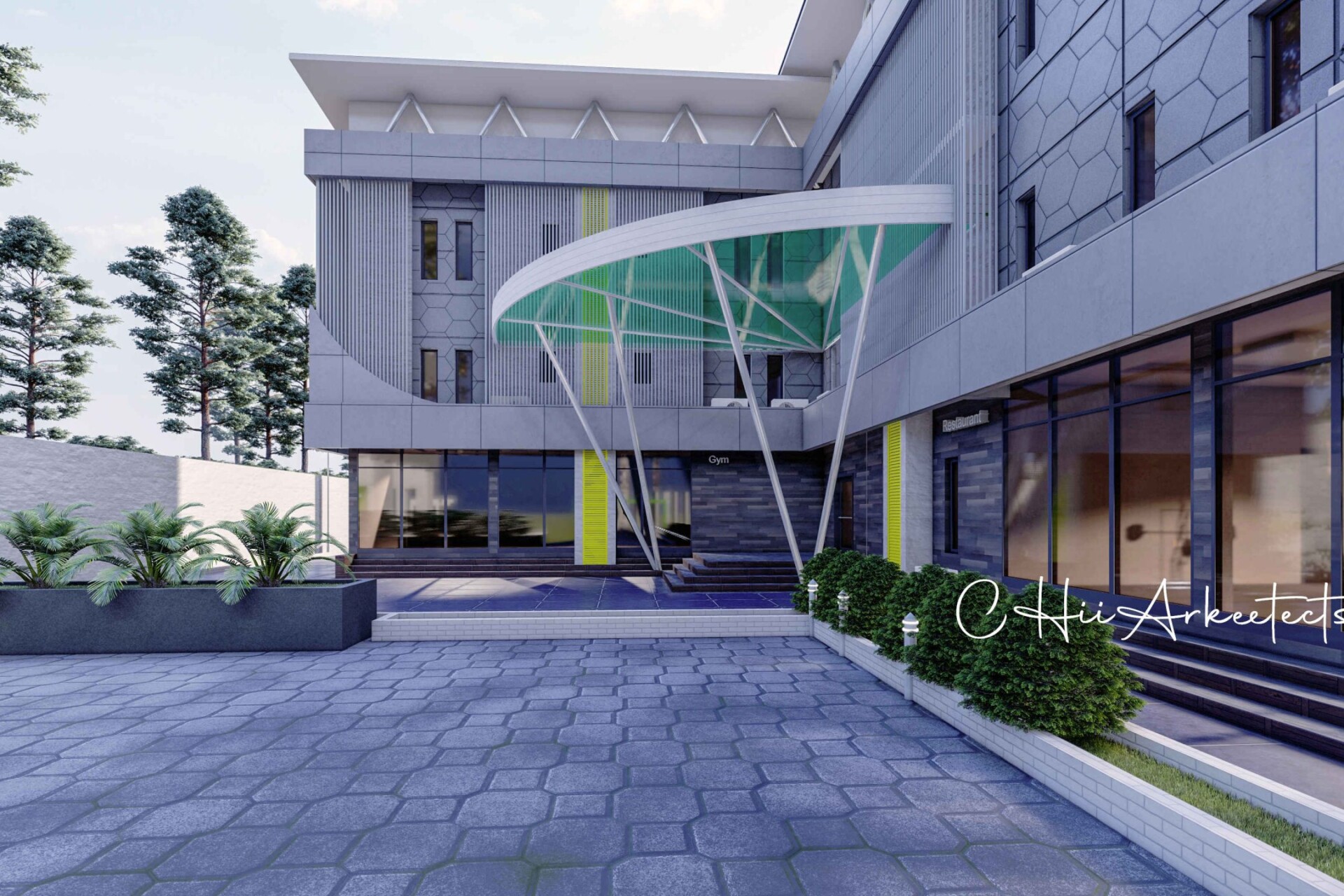 The building is a commercial building hence thoughts were given to the quality and longevity of materials to be used in the construction. Choice materials like Aluco Board were extensively used in the exterior cladding of the building.