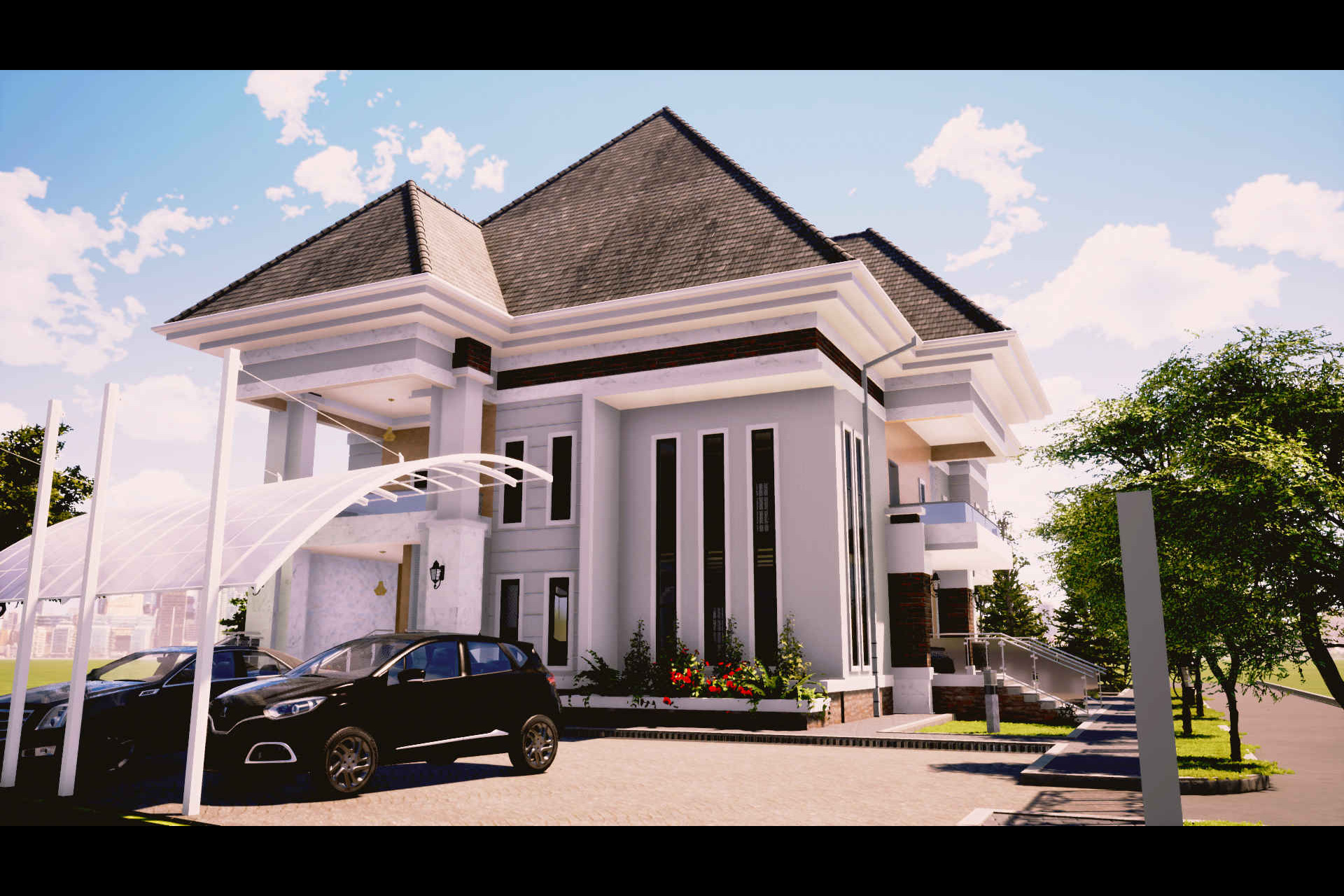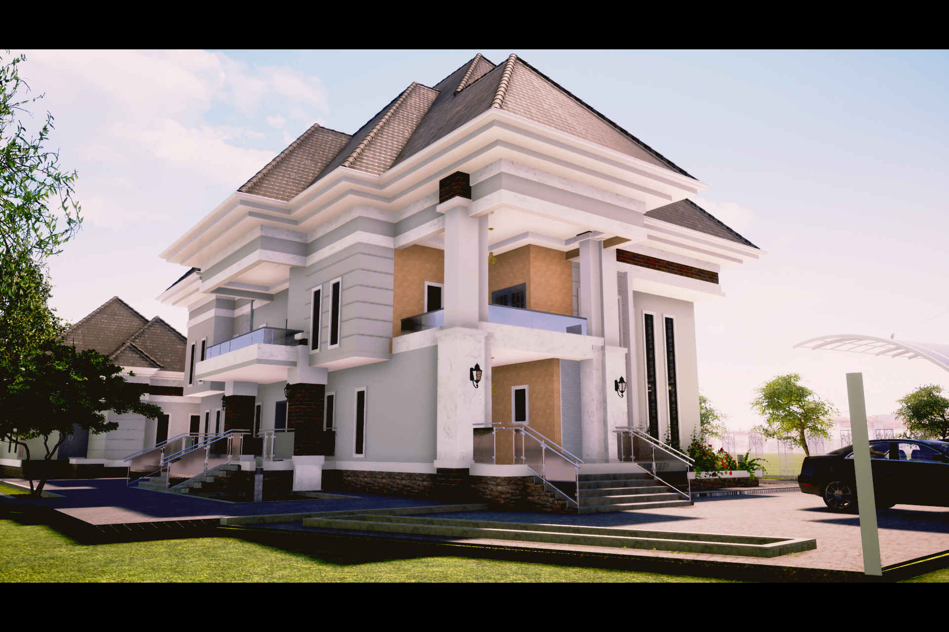 Due to the fact that the building will be located in the eastern part of Nigeria, Designing a column based design was very neccessary. Hence the proposed build was designed with 8 big columns hence giving projecting a design of a semi-ornamental building design.