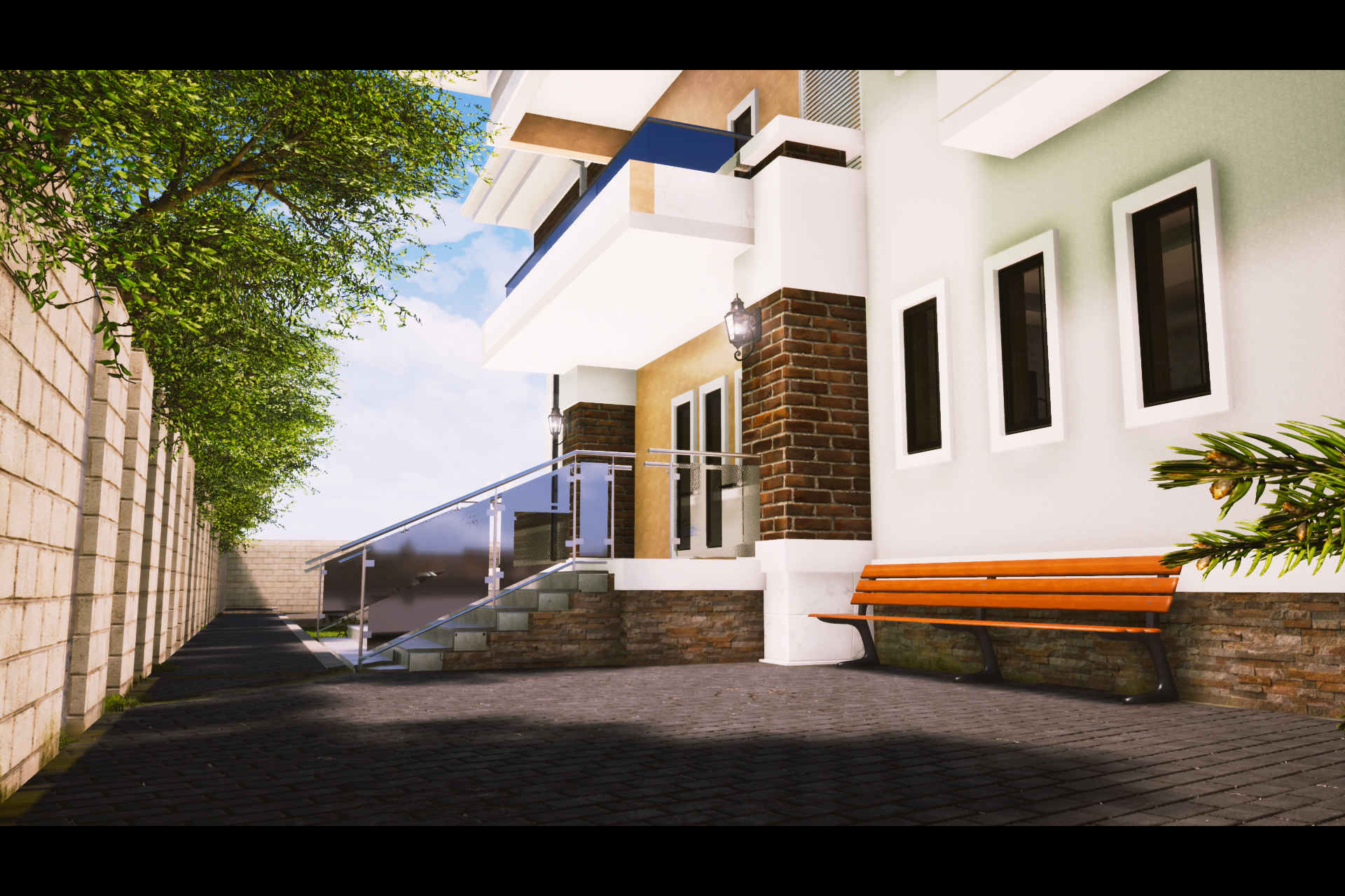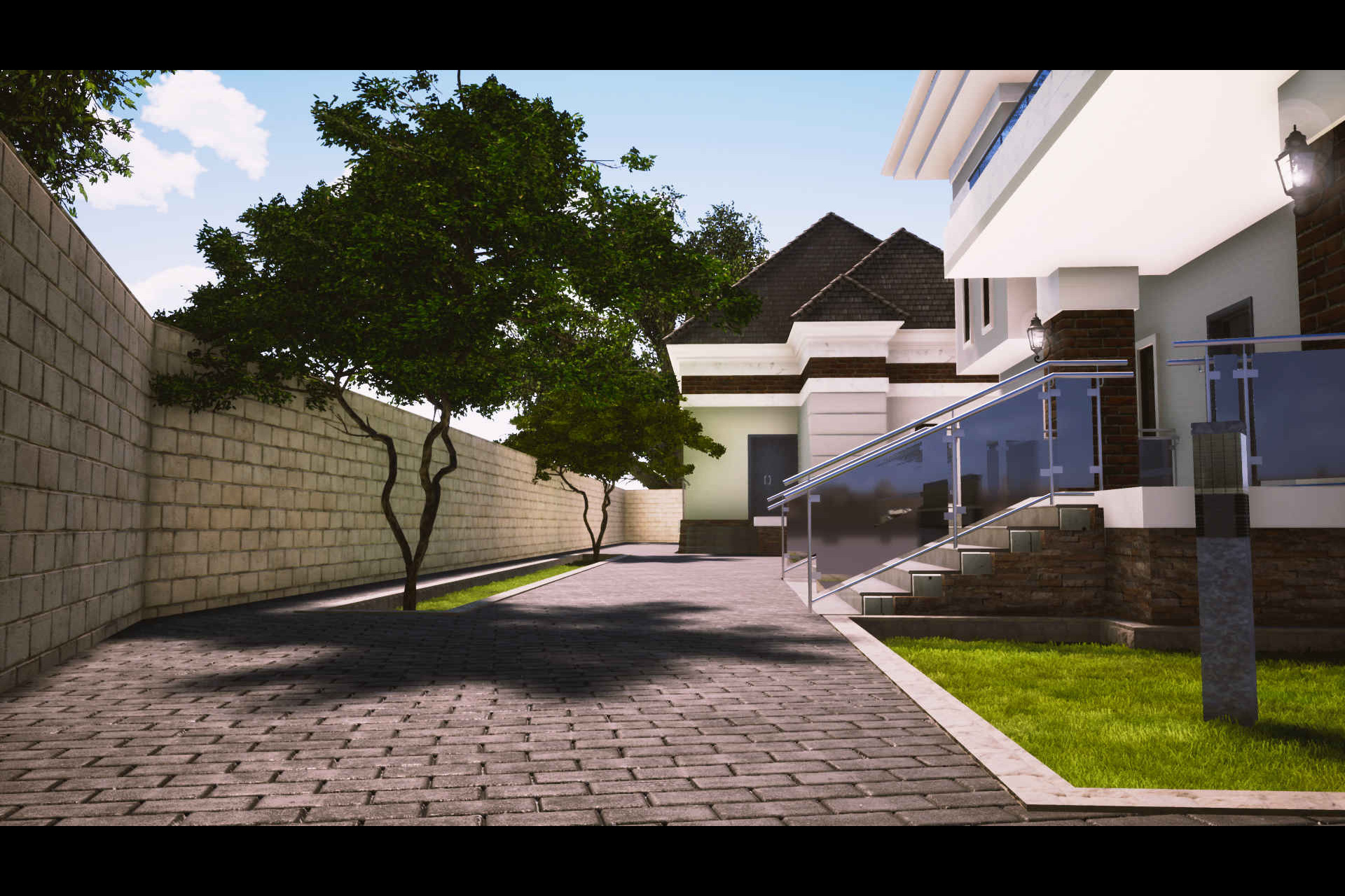 The walls were designed with the regular Sand Crete blocks finished with paintings and facing brick on plastered walls.